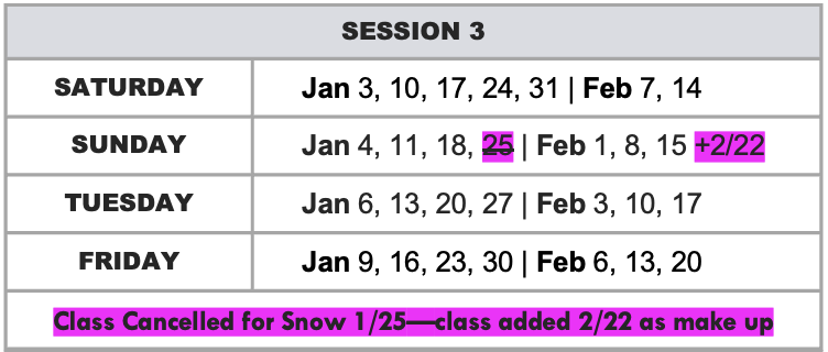 Note! Registration for each session opens about a month before that session’s classes are set to begin.